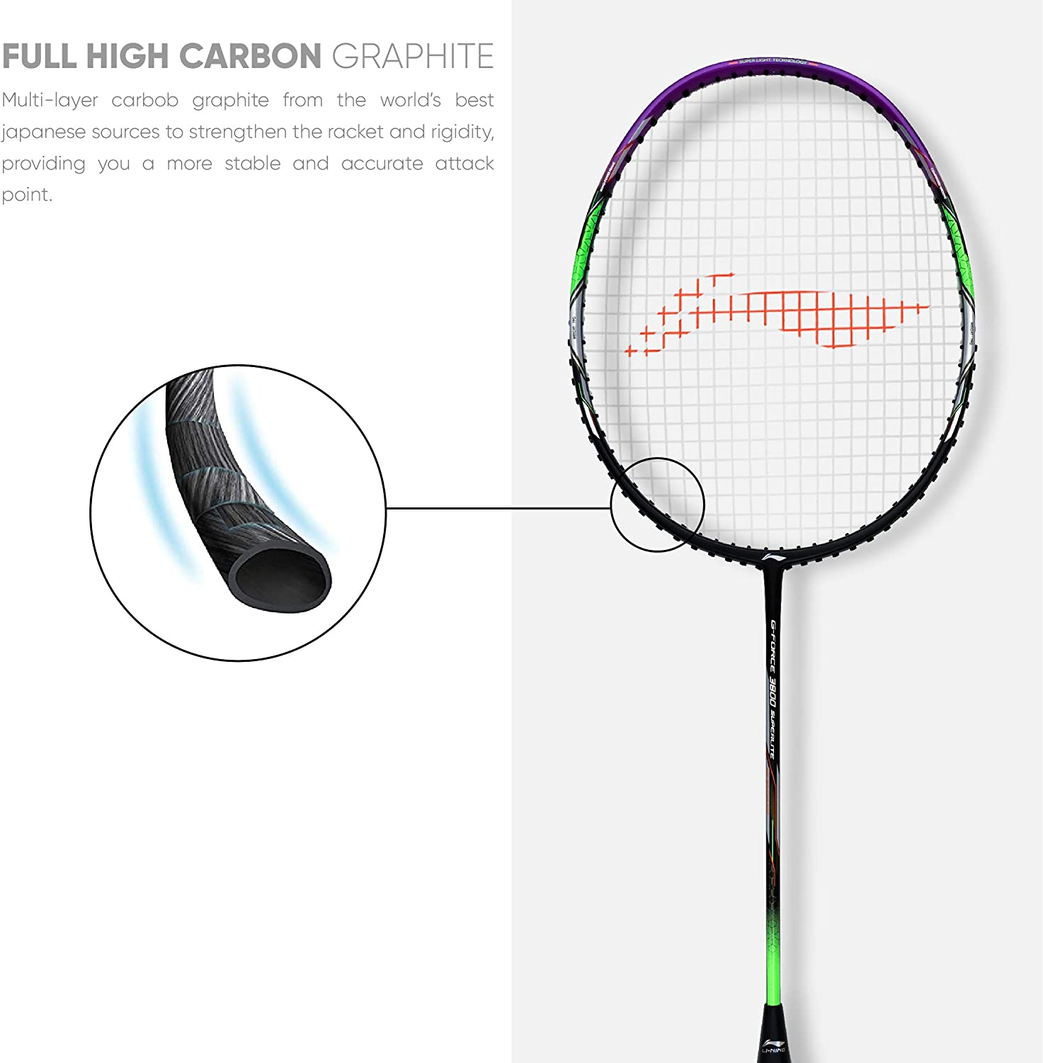 Li-Ning G-Force Superlite 3600 Carbon-Fiber Strung Badminton Racquet with Free Full Cover